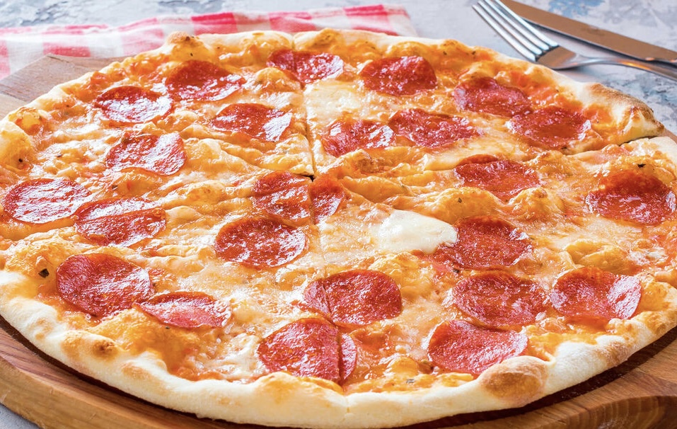Tomato sauce, mozzarella, parmesan cheese, pepperoni